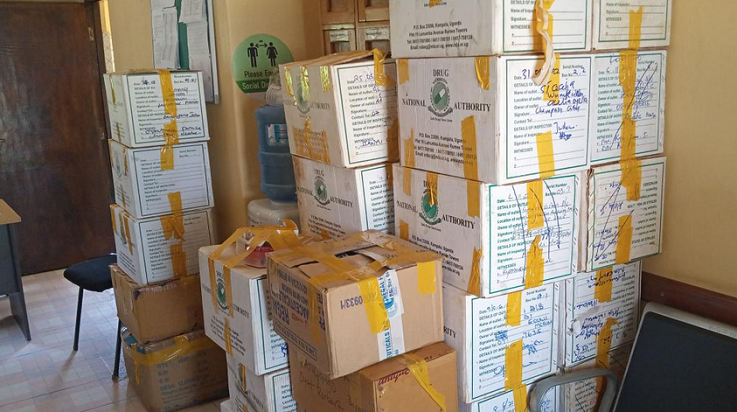Four Boxes of Suspected Stolen Gov’t Drugs Impounded in Hoima Tax Park Enroute to Kampala
